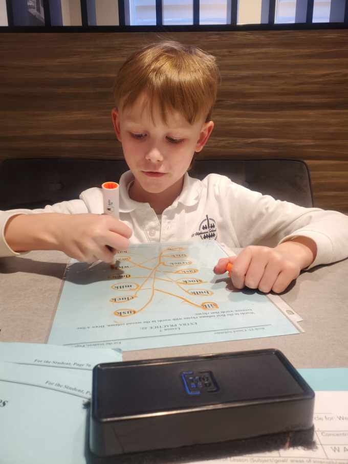 Barton is designed for one-on-one instruction. It is a multi-sensory, tactile program where students “dig in” with their hands and minds to connect sounds and words. Students work with blank tiles, letter tiles, hand gestures, sounding out and spelling on their fingers, on a white board and on paper. They are presented with concrete spelling rules to apply. Students are challenged with mental work first. Level One begins with blank tiles, associating sounds only, and building from there. Every student, regardless of age or grade, will begin at Level One. There are 10 levels that students will move through at their own pace. Depending on the frequency of weekly sessions, one level typically takes an average of 3-6 months to master. The following is an overview of what is involved with each level: