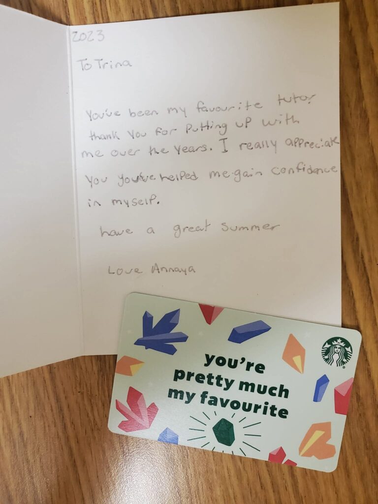 “My son has been working with Trina for over 2 years and I couldn’t be more happy with the progress he has made. After receiving his Dyslexia diagnosis, I searched for a tutor who specialized in teaching children with dyslexia, which led us to Trina. Trina is extremely knowledgeable in the Barton teaching method, which has helped my son’s reading comprehension and fluency. She also works on his writing and math skills. Trina is kind, patient, and encouraging. My son enjoys studying with Trina and has gained so much confidence. I would highly recommend Trina to anyone looking for academic support.”